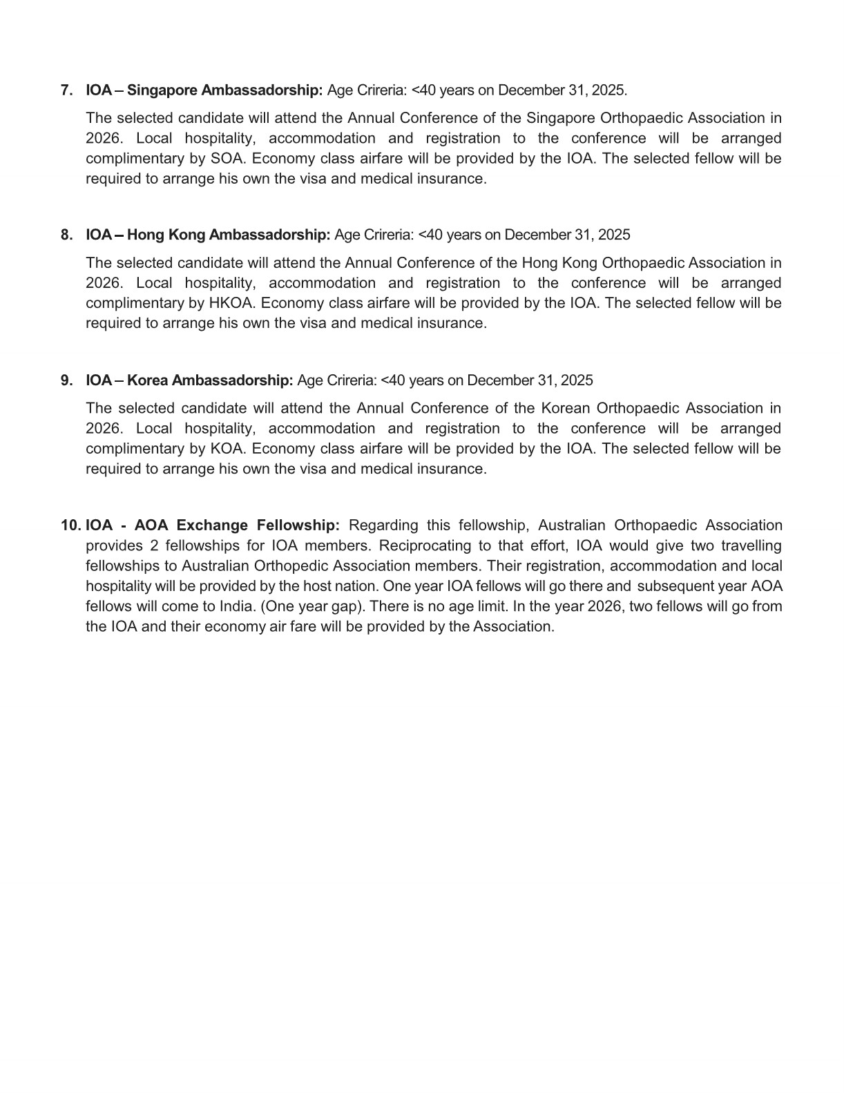 We are inviting application for prestigious IOA Foreign fellowship 2025