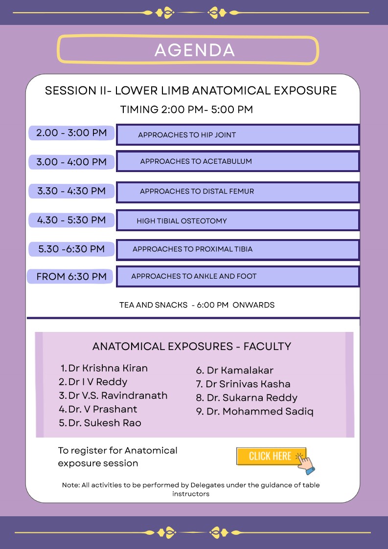 Afternoon: Lower-Limb Surgical ExposuresFormat: 5 participants per cadaver + 1 senior faculty